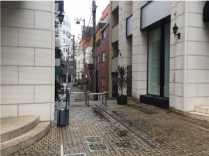 4番出口を出て外苑西通りを左(西麻布交差点方向)にまっすぐ信号を2つ過ぎ数十メートル進むと左側に3段、階段で下りる道があります。そこを降りた右側の建物です